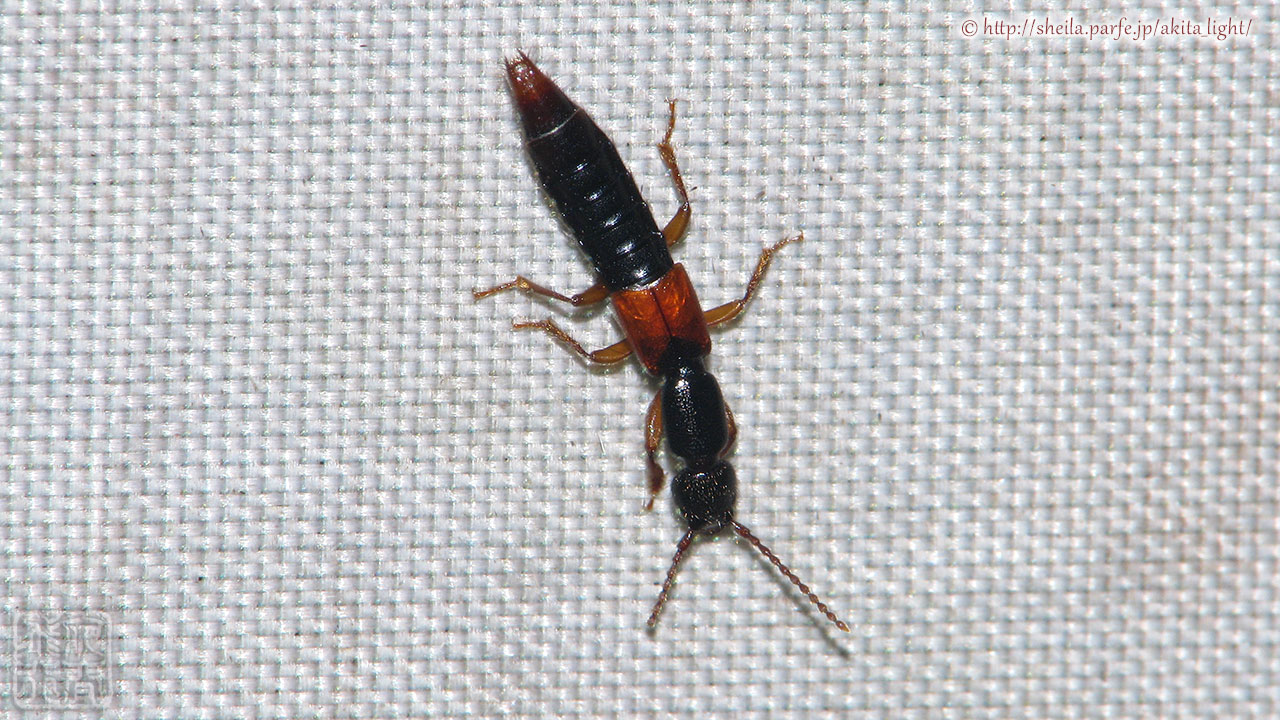 灯火に飛来したナガハネカクシ(アカバナガハネカクシ)