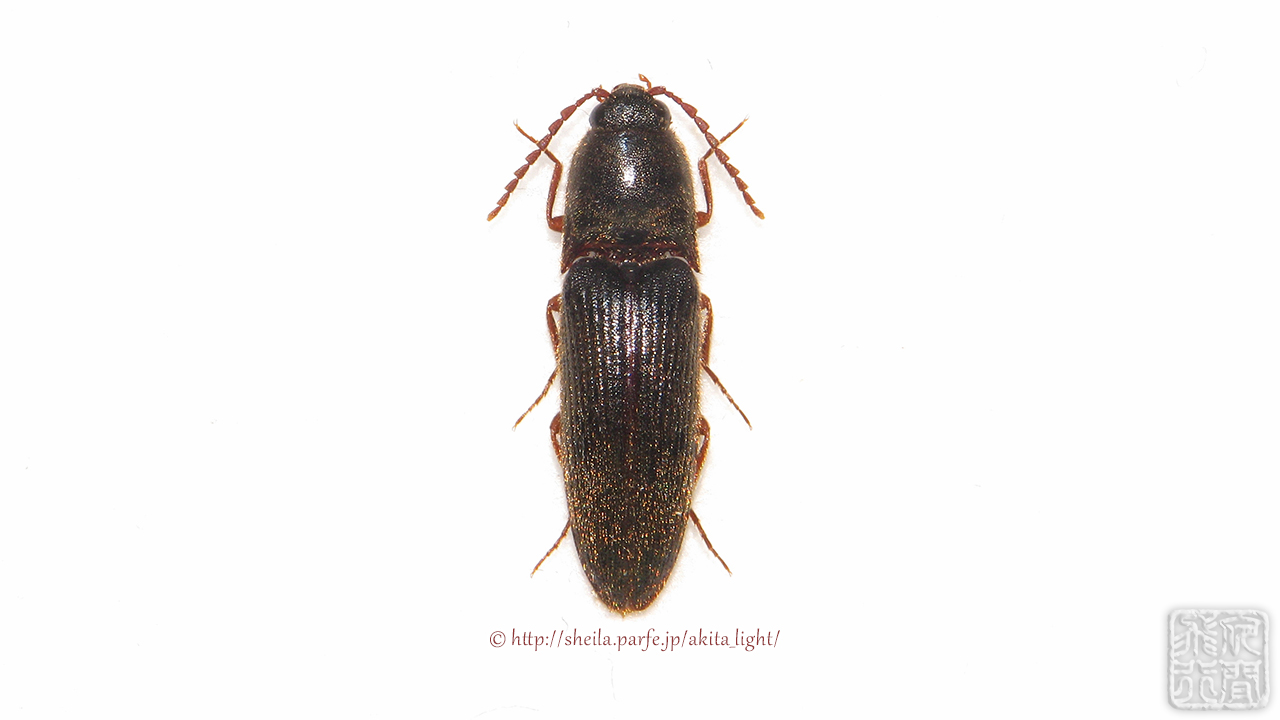 厚みのあるガッシリとした体型をしている。同属のコフトナガコメツキ(E. plebejus)と似るが、触角第3節は第2節の約1.3倍の長さで、2節+3節と第4節はほぼ等長になる。コフトナガの触角は2節目と3節目がほぼ等長で、第2節+3節は第4節より明らかに短い。
