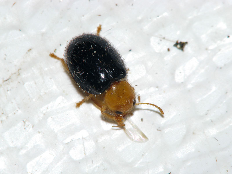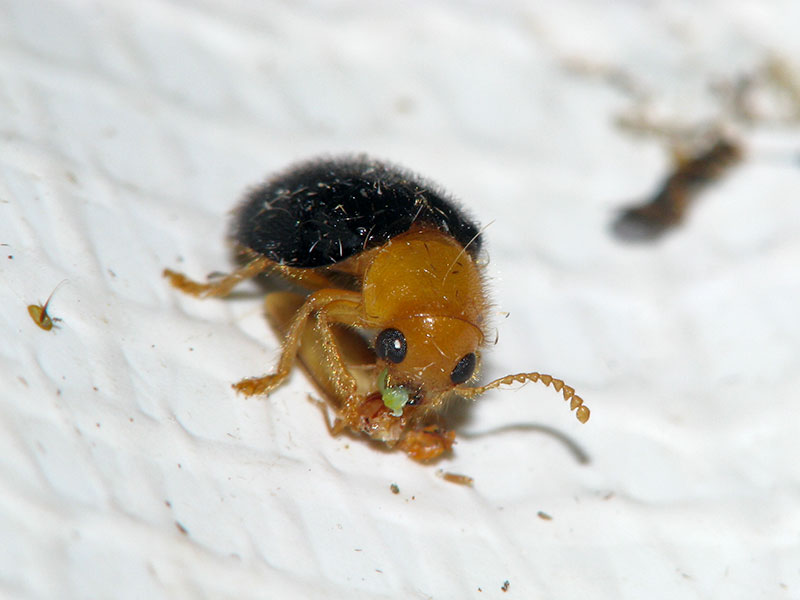 さっそく捕獲して撮影してみた。体型などからムネアカマルカッコウムシのようだ。