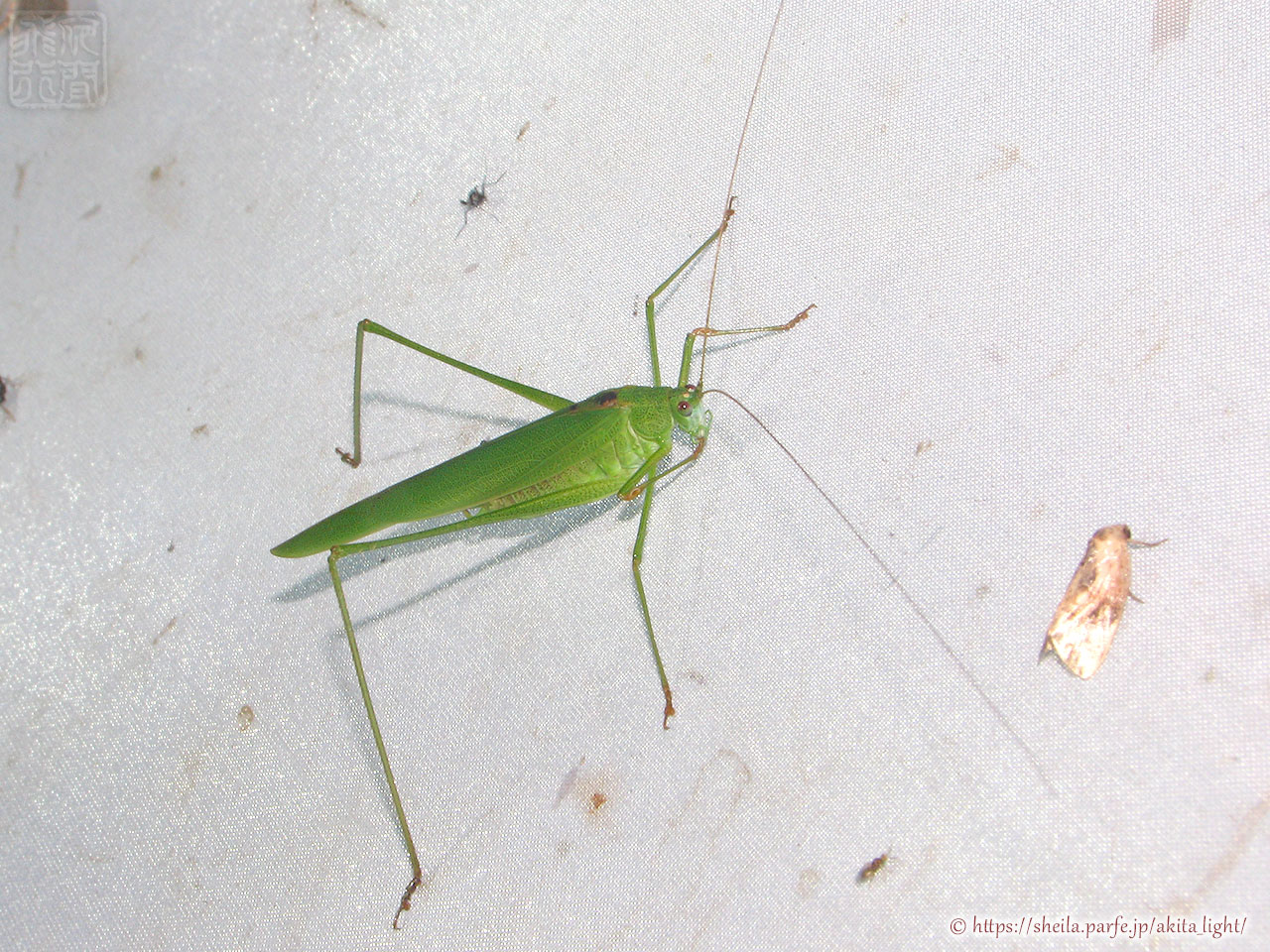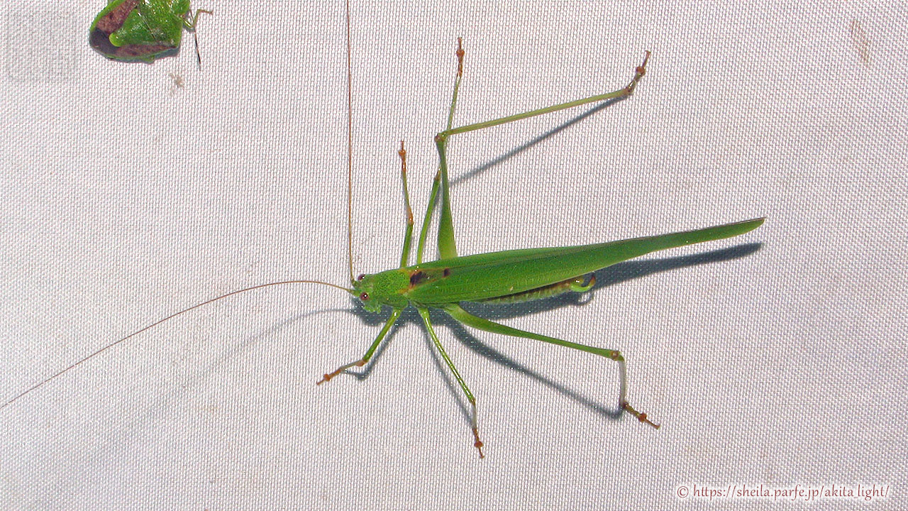 ライトトラップに飛来したツユムシ(雄個体)