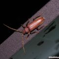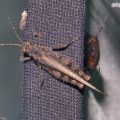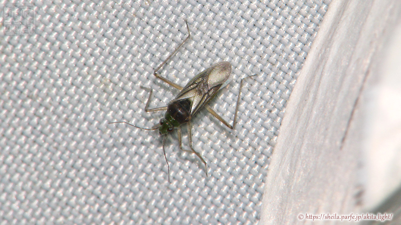 ミズカメムシ類はほとんどが無翅型になるが、種によってときどきこのような長翅型が出現する。長翅型は移動能力が高く灯火にも飛来する。