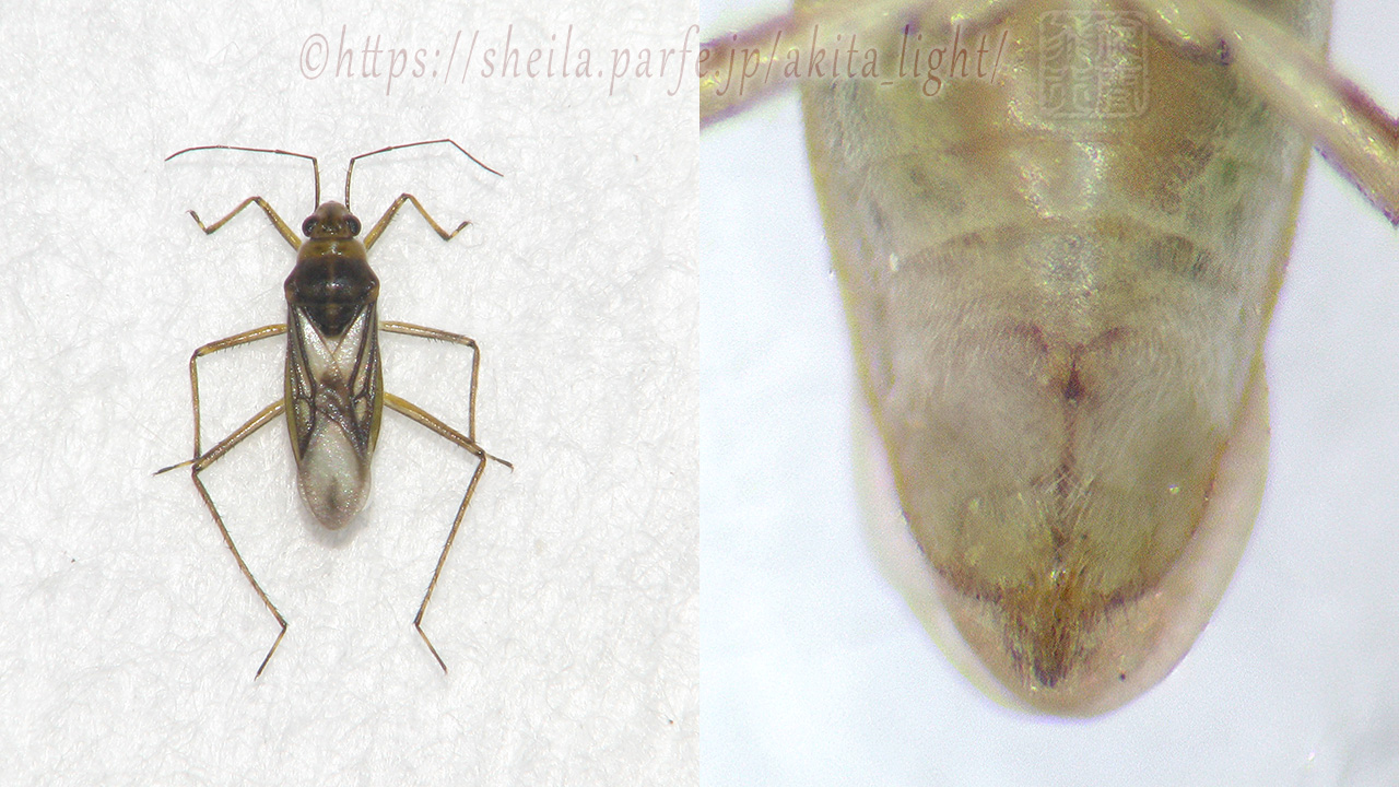 同個体標本。♀は第9腹板に1対の突起が無いことで他のミズカメムシ類と区別できるようだ。
