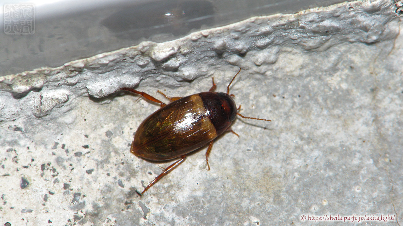 本県での分布も局地的にはなるものの、生息地での個体数は少なくないようで、この夜に外灯下から持ち帰ったセスジゲンゴロウ類6頭のうち2頭が本種だった。