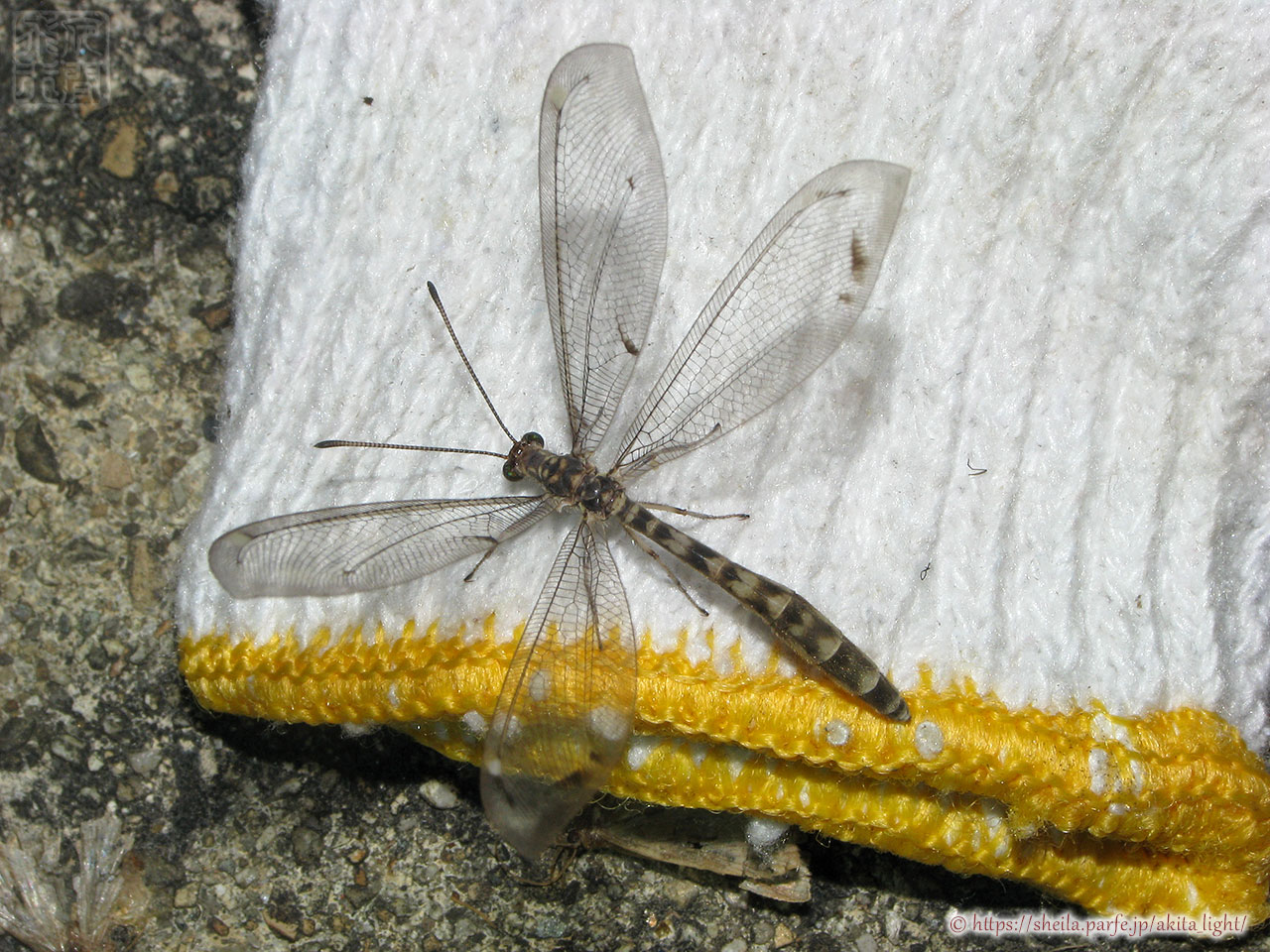 以前ホシウスバカゲロウ(P. japonicus)のページに掲載していた♀個体。全体の特徴からシロハラホシウスバカゲロウの♀個体になると思われる。♀も腹部の白斑は同属他種より発達するそうだ。