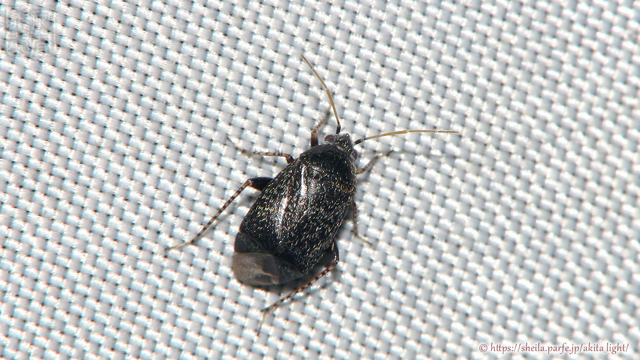 ライトトラップ下のクロツヤトビカスミカメ(メス)