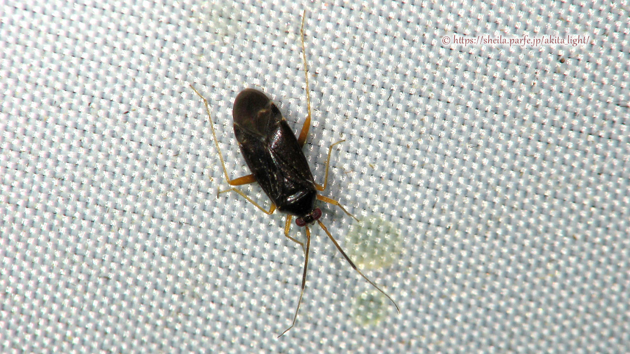 ライトトラップ下で撮影したキアシクロチビカスミカメ属の一種(Orthonotus nakagawai)