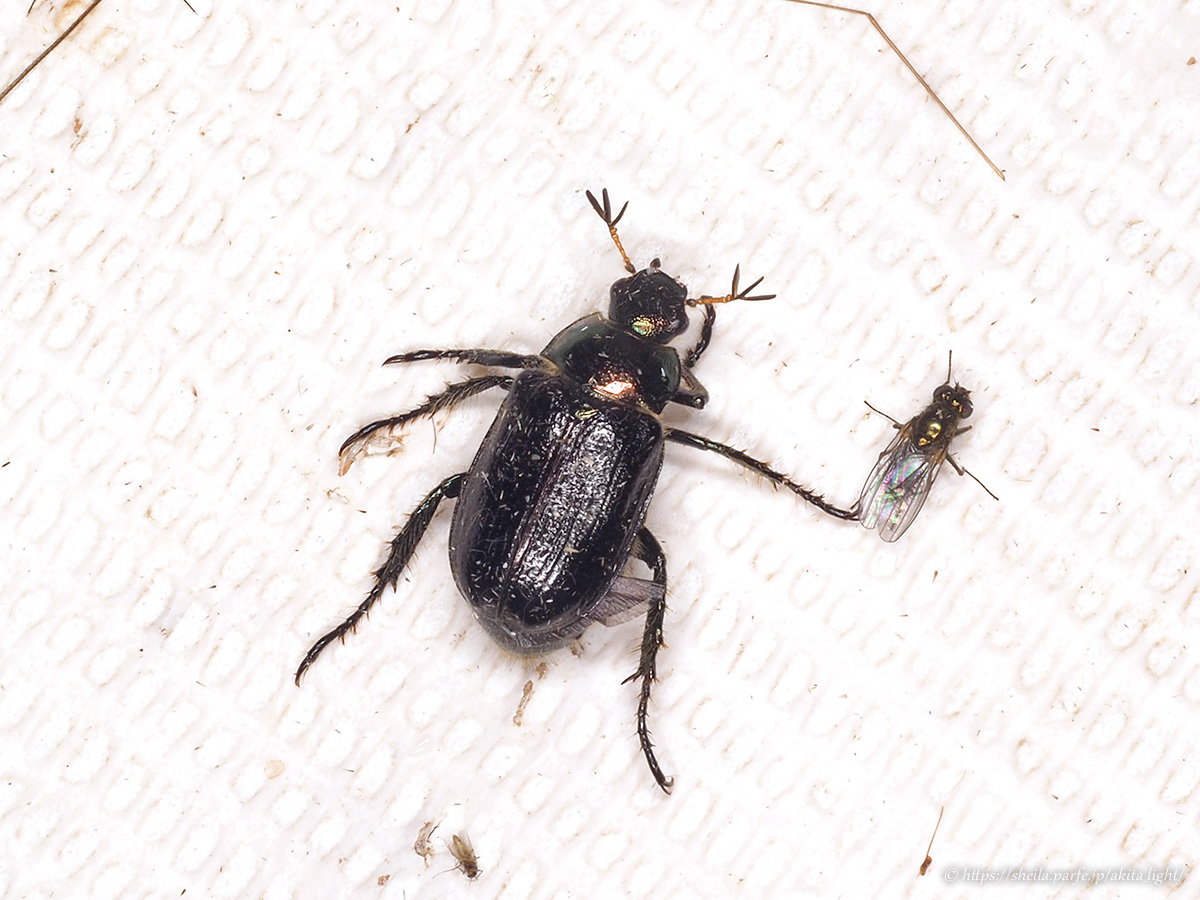 ♀の上翅には毛が無いようなので♂個体と思われる。日中に林縁の低植物上などで目にすることがあるがライトにはほとんど飛来したことがない。