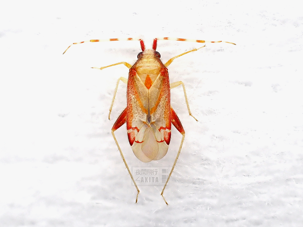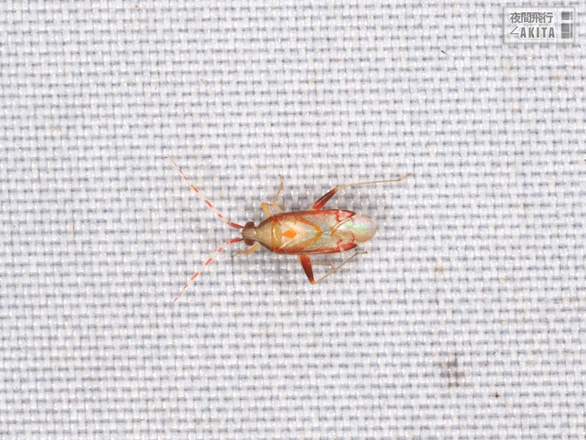 南方系のカスミカメムシで、白布にとまる本種を発見したときは驚いた。近年、埼玉県など関東あたりまでの記録はあったが、秋田で目にするとは思っていなかった。飛翔力が高く長距離移動できる種なのか、なんらかの苗木による移動なのか…。この飛来以降は見ていない。