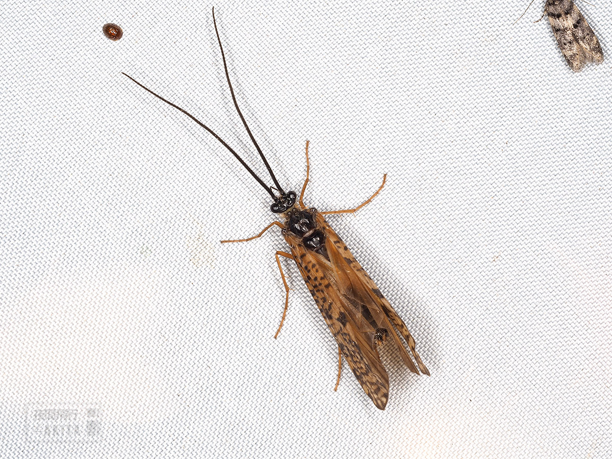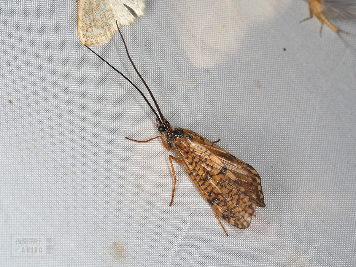 ライトトラップに飛来したヤチアミメトビケラの雄
