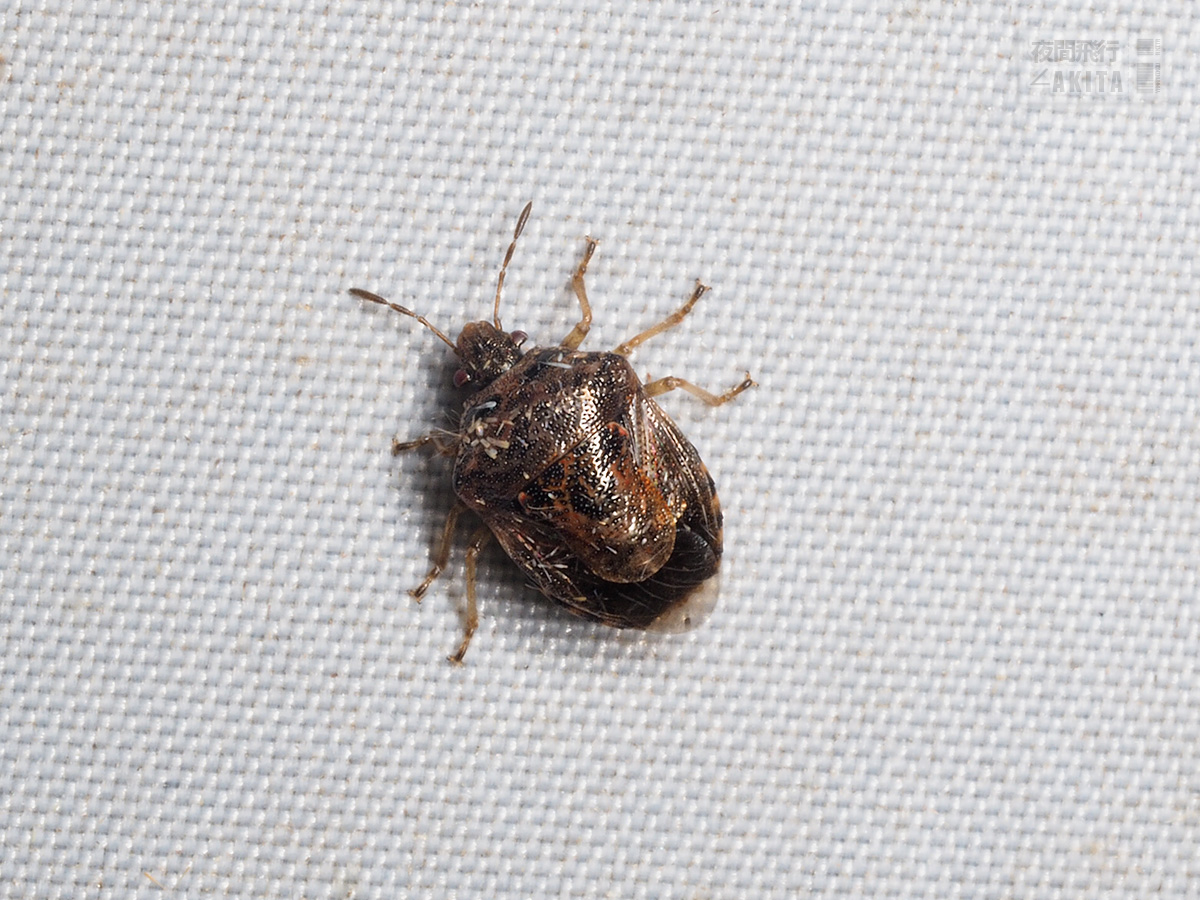 腹部の黒点が少なく背面がより隆起した近似種がいるが、ここに掲載したものは真の「ミヤマカメムシ」で、秋田県では近似種のほうはこれまで見ていない。