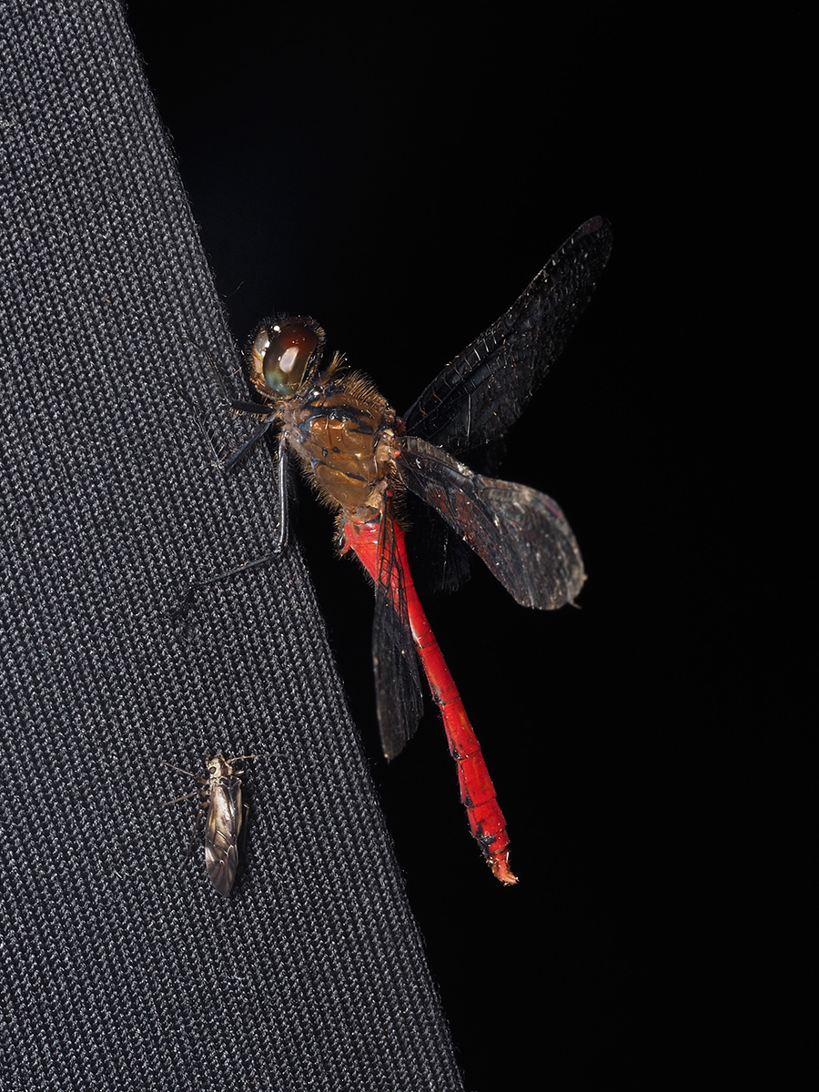 ♂の尾部上付属器は上に反る。同属のマイコアカネ(S. kunckeli)に似るが、顔の模様、胸部の模様から区別できる。肝心の本種の特徴である顔(眉状班)を撮り忘れた…。