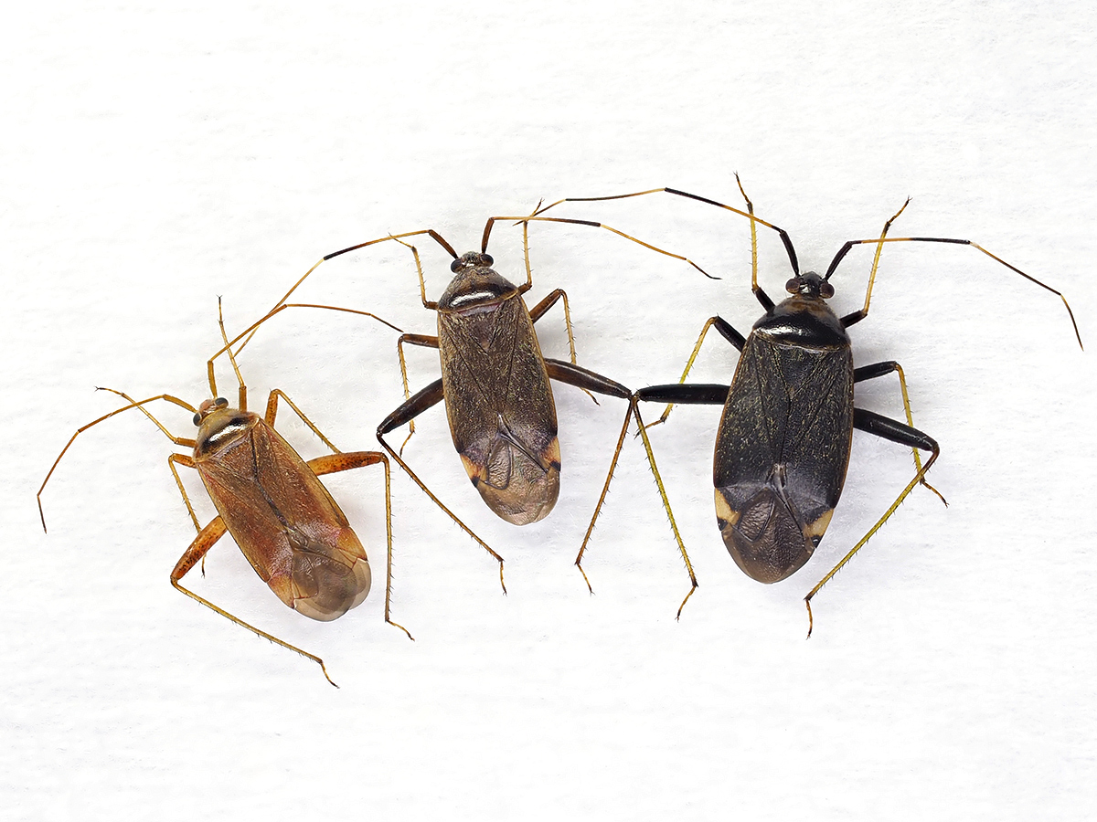 Adelphocoris属の雌3種の標本を並べた