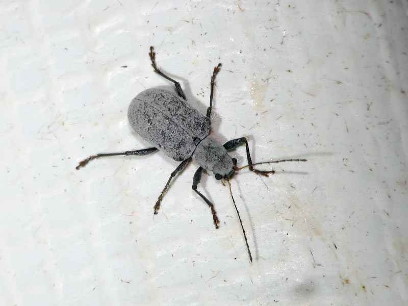 別名コフキサルハムシ。体色は黒だが新鮮な個体は白色粉におおわれている。