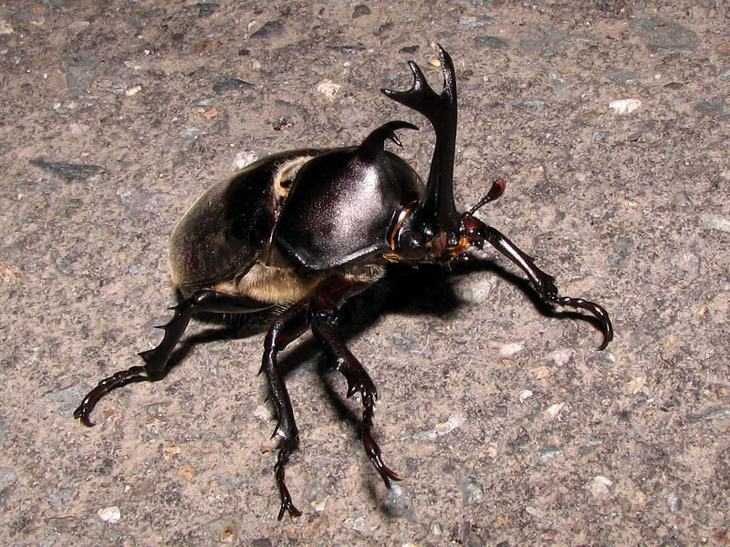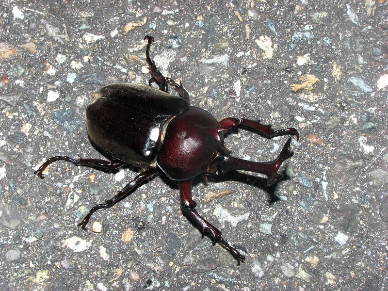 クワガタと並び子ども達に人気昆虫の代表格だろう。大型の♂は立派な頭角を持つ。
