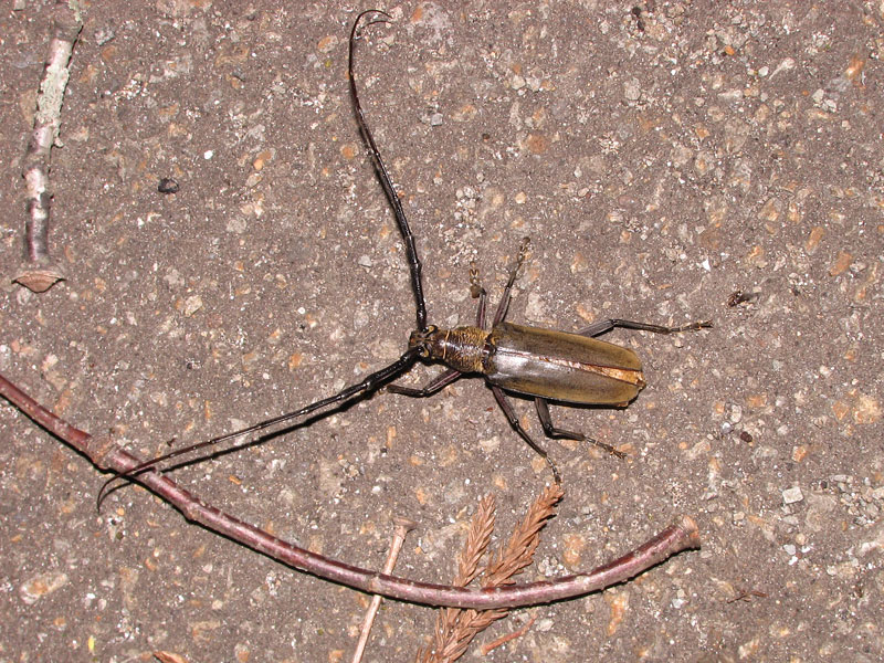 ♂個体。♀の触角は上翅端にとどく程度で、♂では画像のとおり上翅端を超える太くて立派な触角をもつ。