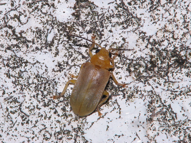 ここの外灯下ではときどき目にするハムシで、透き通るような上翅や体色などからエノキハムシと思われる。