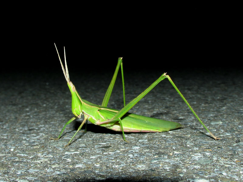 外灯の下をバッタバッタと跳んでいた。♀は大型で日本のバッタのなかでは最大種。