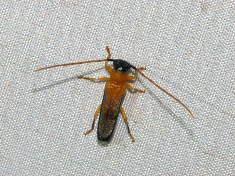 秋田県では低山地~山地に普通でヨモギ類、アザミ類に見られる。ライトトラップへは初飛来。触角が黄褐色になることでOberea属と区別できる。
