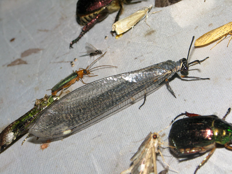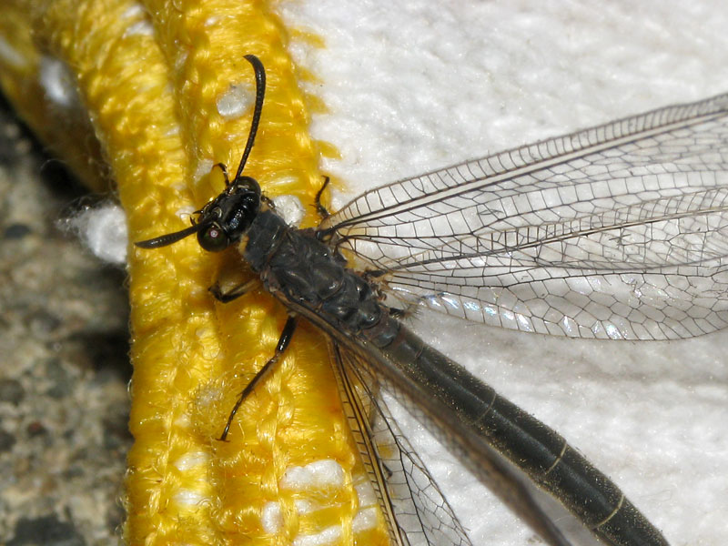 クロコウスバカゲロウ(M.boreに似るが中脚脛節の色から区別できる(コ→黒,クロコ→黄色)。この個体は中脚脛節にやや黄色味がかる部分があって微妙に見えるが、クロコは黄色の部分がより明瞭になる→画像