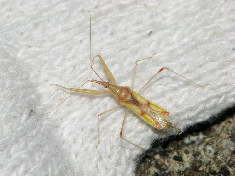 紅色の斑紋と淡い色彩が綺麗なマキバサシガメの仲間。山間のオニグルミやキリなどの葉裏にみられ小昆虫を補食する。灯火にはときどき飛来する程度だが、この日は2頭飛来していた。