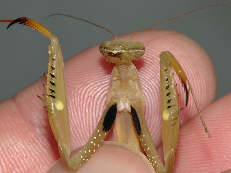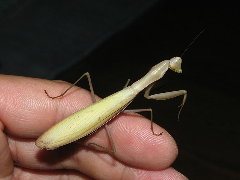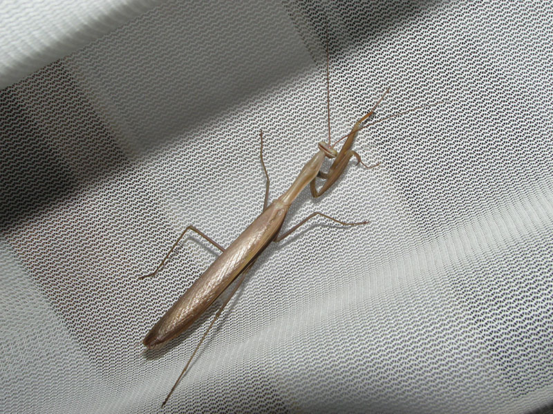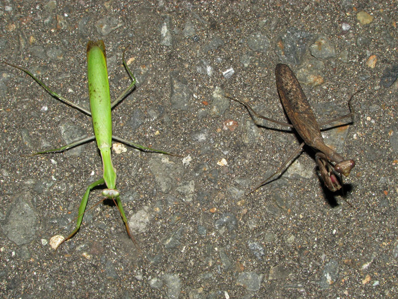 近くにいたコカマキリ(Statilia maculata)と並べてみた。見つけた瞬間はコカマキリの緑色型かと思うくらい小さい♂だった。