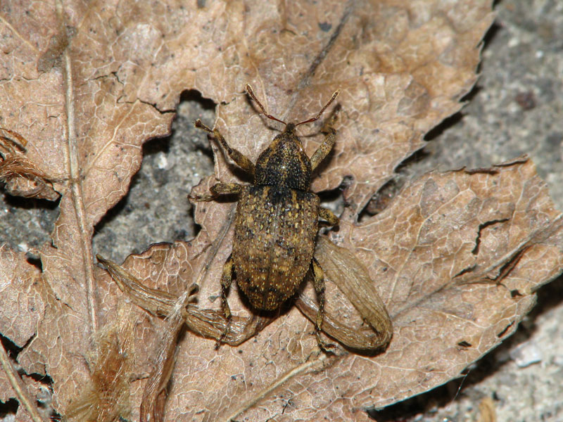 黄褐色の鱗毛に覆われていてピンとこなかったがウンモンナガクチカクシゾウムシの新鮮な個体と思われる。