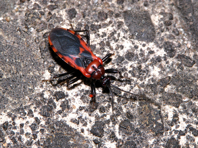 掲載済みのクビグロアカサシガメ(H.delibuta)に似るが、本種は前胸背前葉後葉ともに赤くなる。この仲間はヤスデ類を好んで捕食するため、灯火に来たというよりは捕食目的の徘徊と思われた。