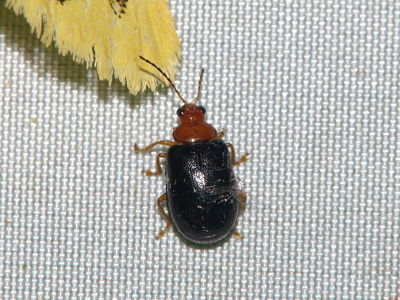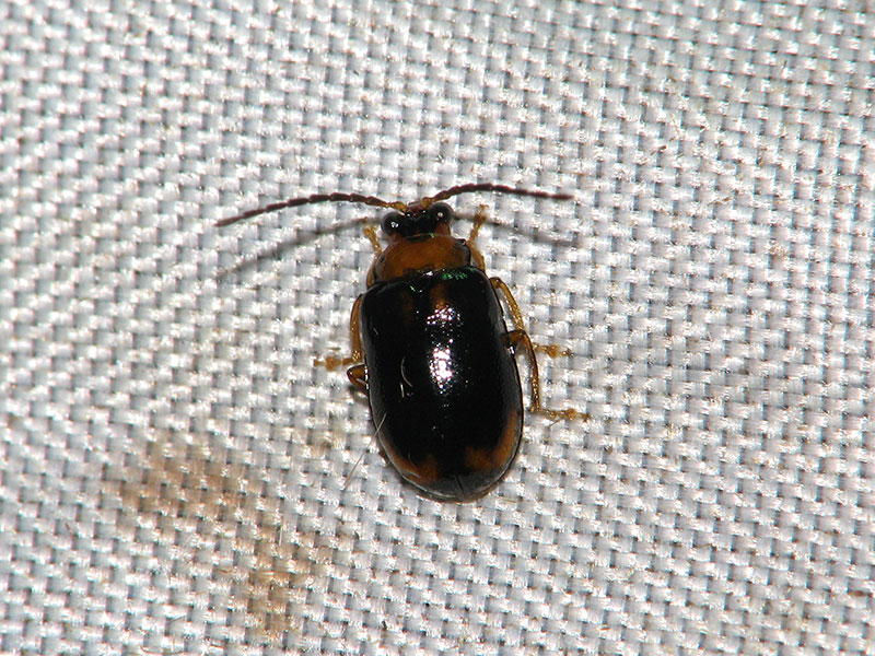 灯火によく飛来するお馴染みのハムシ。色彩変異が大きく、斑紋になる個体も見られる。食草はハンノキ、クワ、カエデなど。