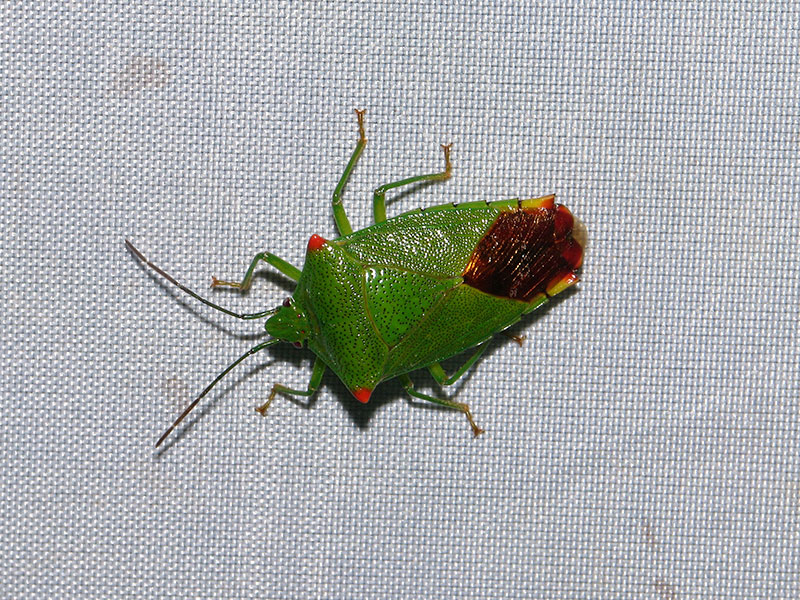 同日に飛来したハサミツノカメムシ♀個体。寄主植物はミズキ、キハダ、サンショウ、ウルシ類など。