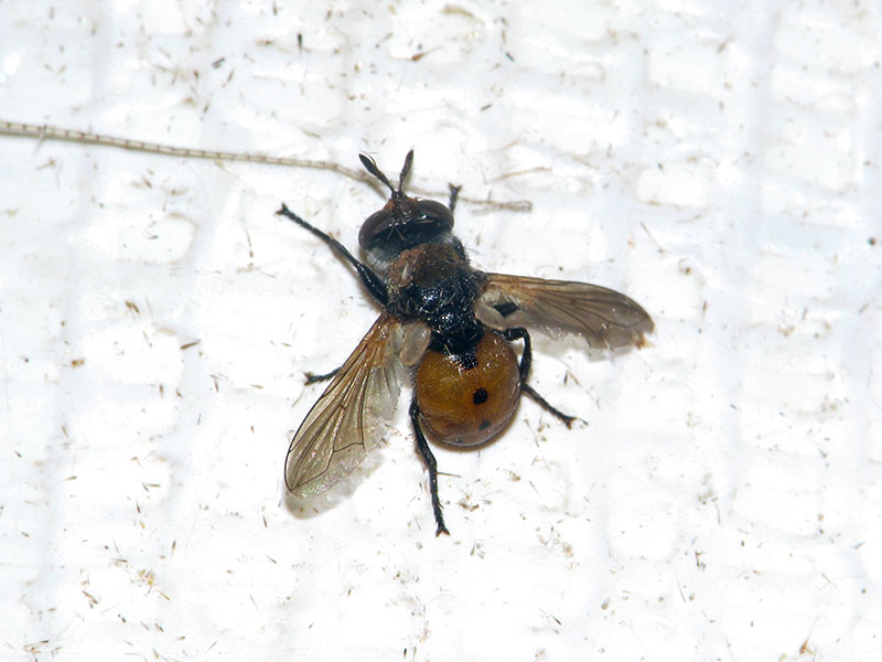 腹部の黒紋は個体により変異があるようだ。幼虫はシラホシカメムシなどカメムシ類に寄生する。